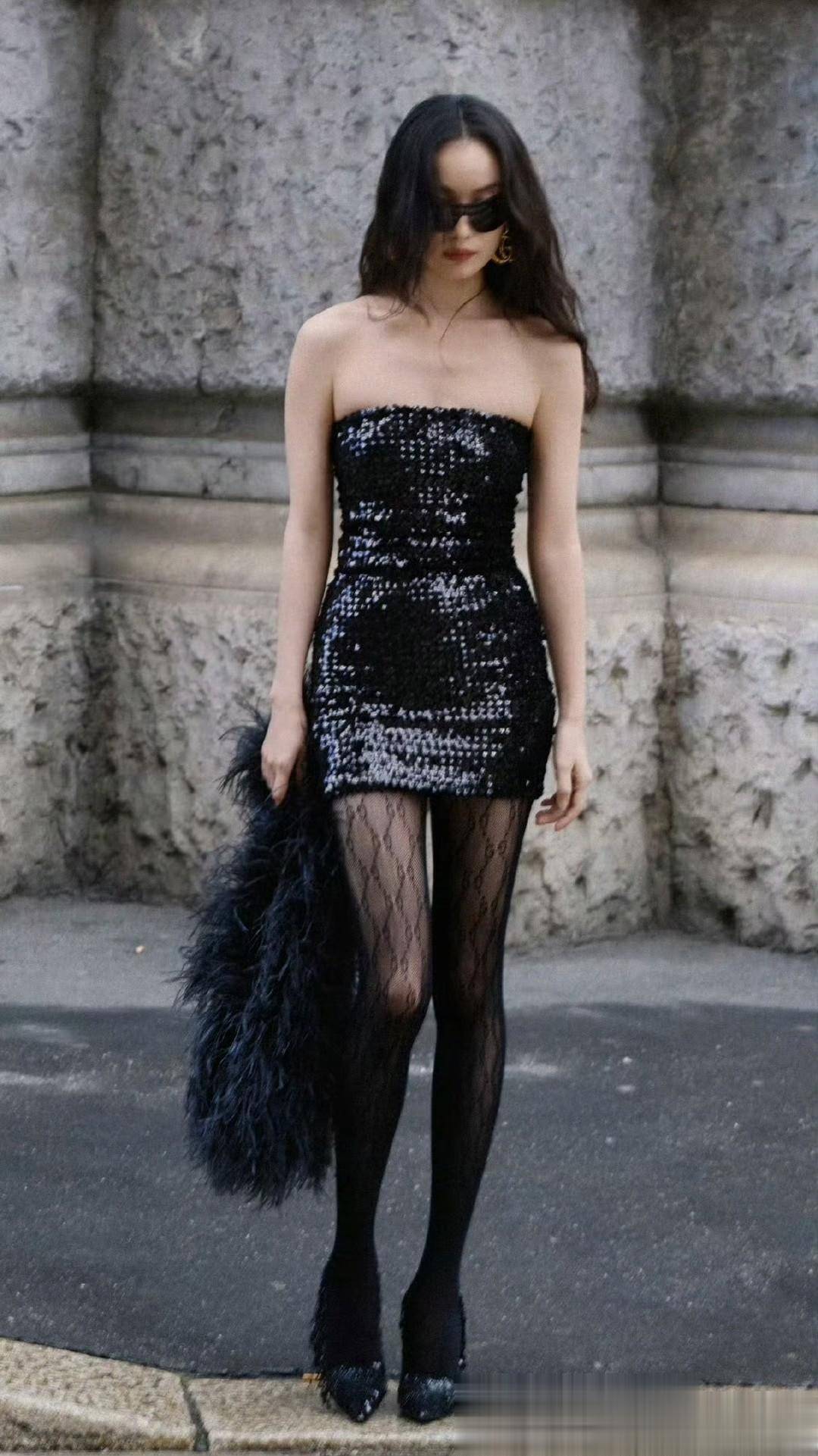 抵达看秀现场后,她身着黑色亮片抹胸短裙,搭配黑丝与高跟鞋,完美身材展露无遗,魅惑感十足。品牌大logo耳饰与墨镜更是锦上添花,随意摆出的造型都颇具杂志封面的风范。妆容走的是魅惑路线,眼妆为小烟熏,还有小雀斑加以点缀,与以往风格大相径庭。她与宋威龙携手,气场与身材曲线极为吸睛,相较之下,宋威龙的造型则略显逊色,机车造型露出了小肚子,妆容还显得脸色过白,颜值未能充分展现。倪妮此次在时装周着实狠狠地惊艳了众人一把!